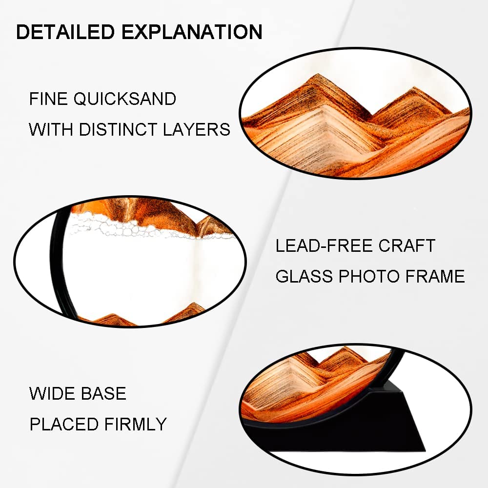 • *[ Exquisite Design ] Moving Sand Picture Is A Mesmerizing And Dynamic Art Piece. Rotating The Glass, And Enjoy The Sight Of The Sand Swirling And Shifting Into Clouds And Landscapes, Ocean And Mountains Of Intricate Lines And Patterns.