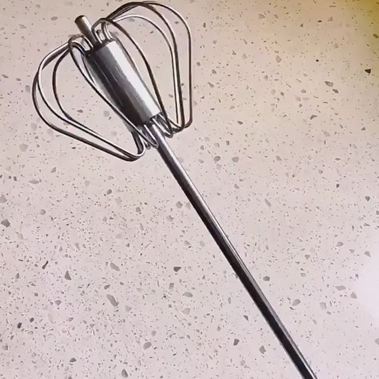 • Fast and easy to use; to rotate whisk head, just push downward and release upward; both actions rotate the whisk clockwise then counterclockwise